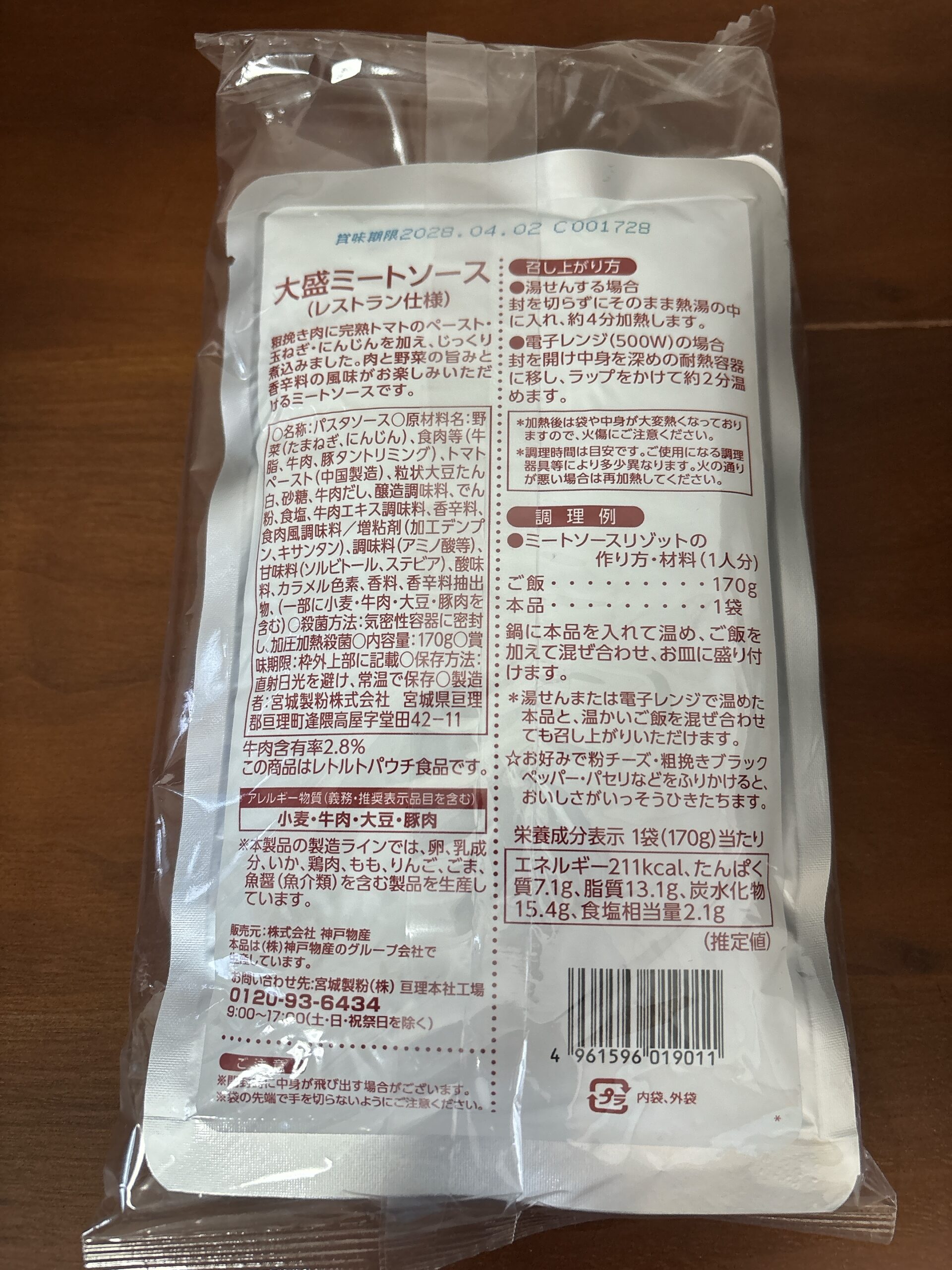 製造元は宮城県に本社を置く宮城製粉という会社です。