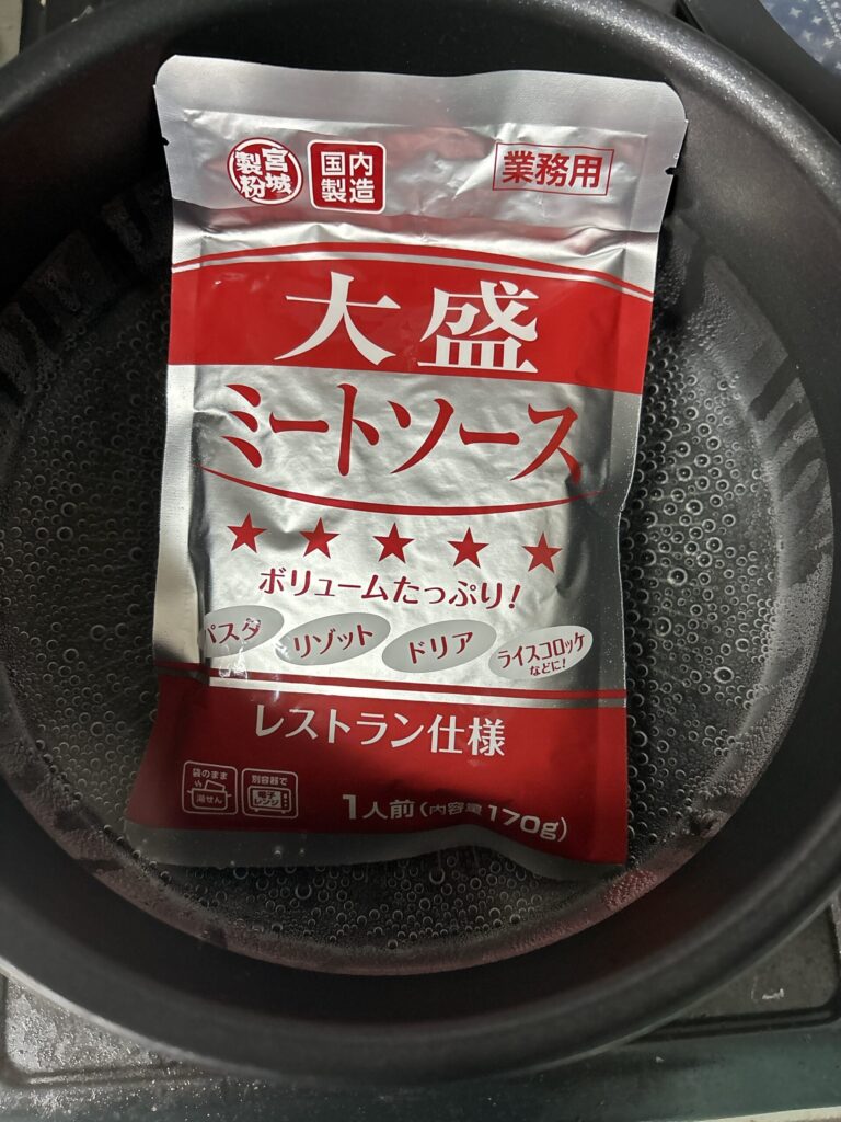 業務スーパーの大盛ミートソースは大容量でお手軽なレトルトのミートソースです。