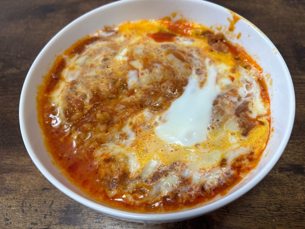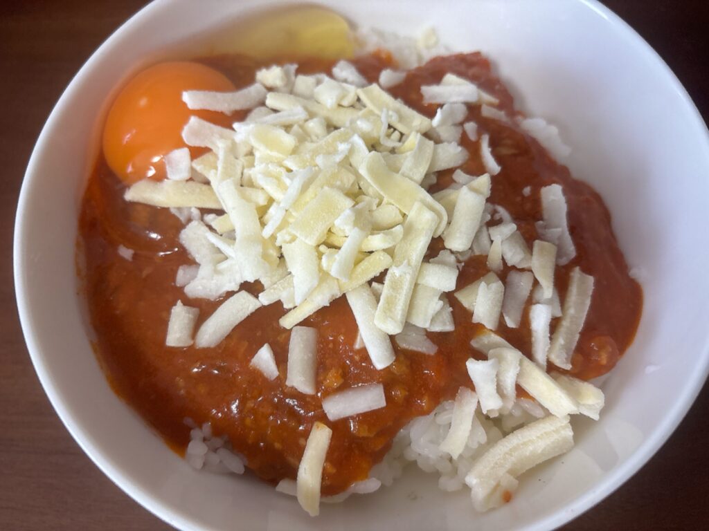 ミートソースとチーズと卵が絶妙にマッチしていて、