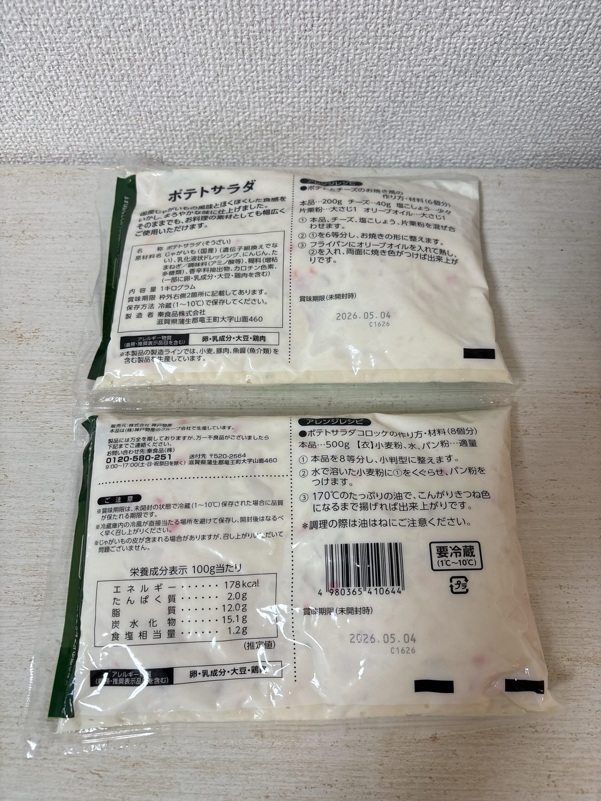 ポテトサラダの袋の裏にも記載がありますので、そちらもご覧ください。