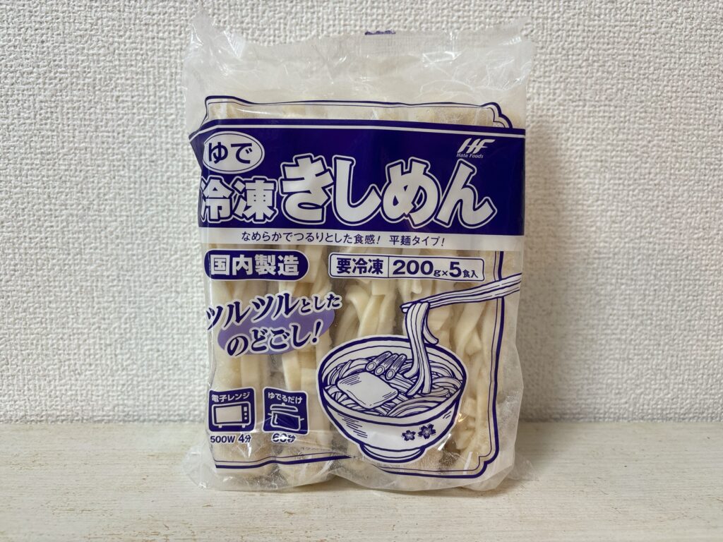 | 業務スーパー 冷凍きしめん | 平たいため、冷凍うどんよりももちもち感は劣る | 冷凍うどんと大差なし | 冷凍うどんよりも絡みやすい |